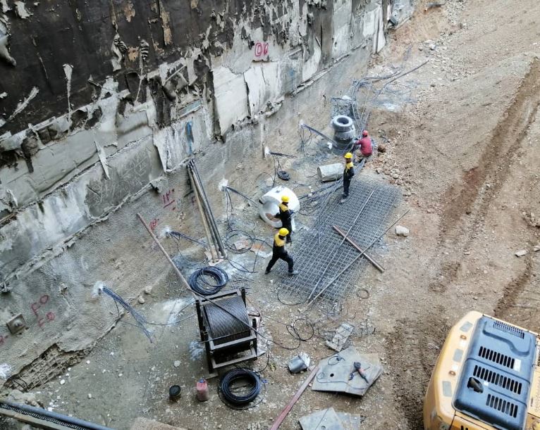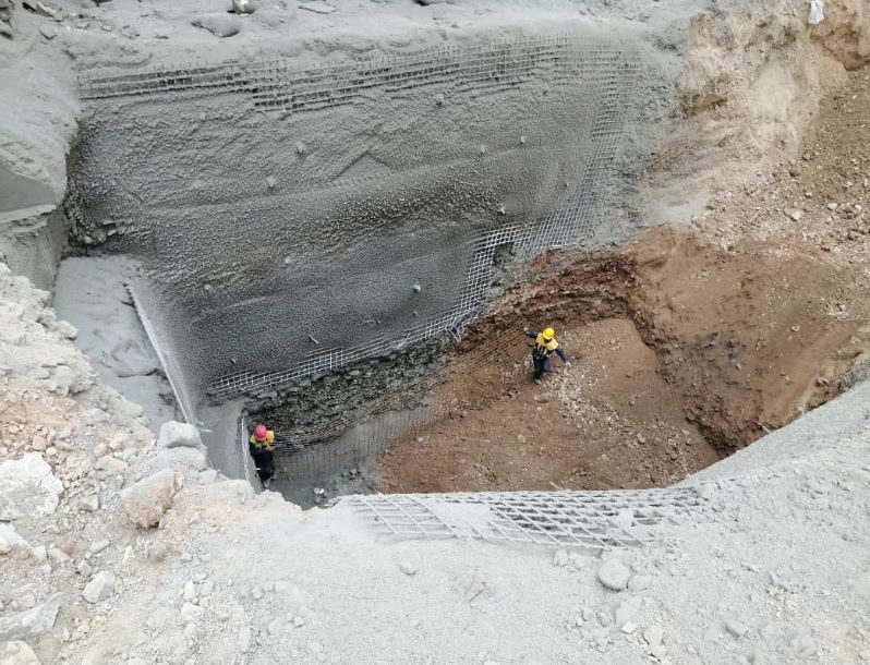 اجرای مِش و شات کریت دیواره محل اجرای تاورکرین