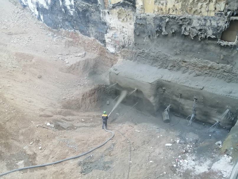 - اجرای مش و شات کریت دیواره جنوب شرقی گود