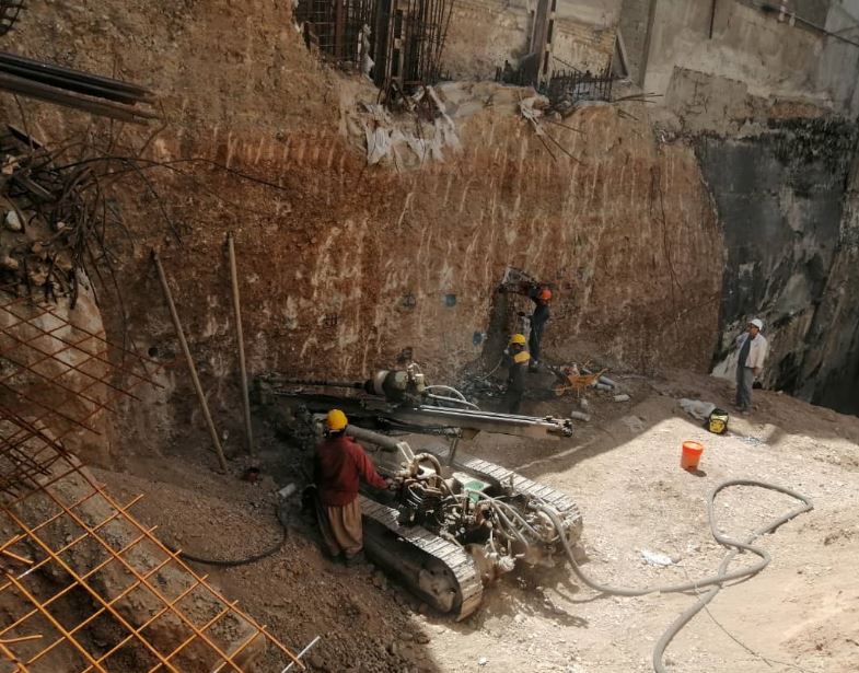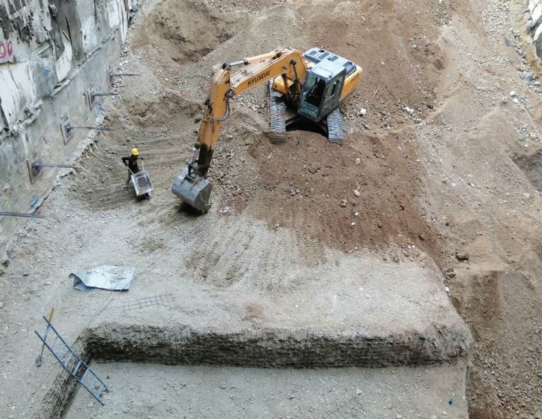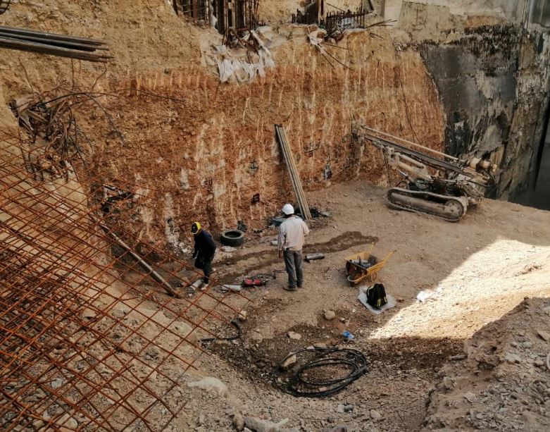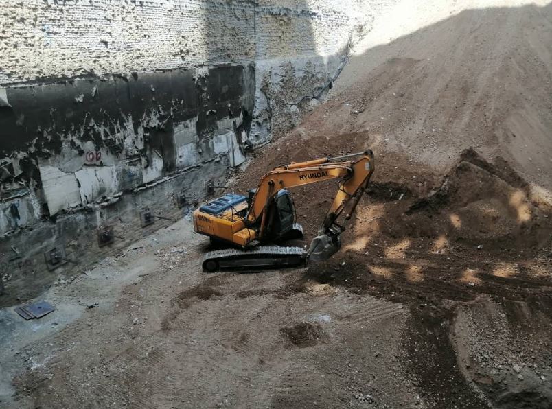 تقطیع و کوبیدن و آماده سازی بستر جهت مِگر، خاکبرداری ، حفاری، استرندگذاری ، تقویت شمع های قدیمی، شات کریت مش جداره، ادامه حفر شفت محل تاور کرین