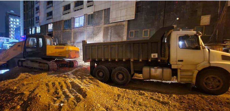 حضور جرثقیل و پاکت جهت گودبرداری محل شفت تاور کرین