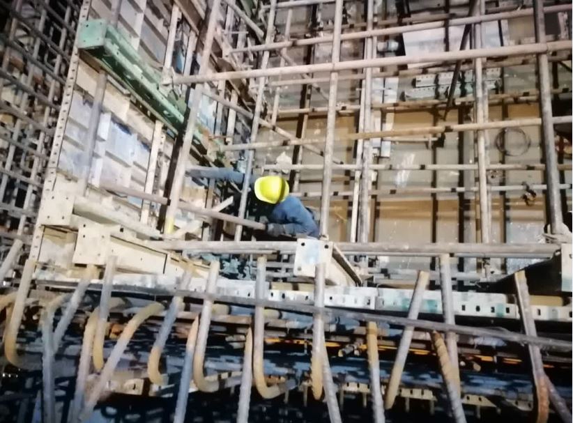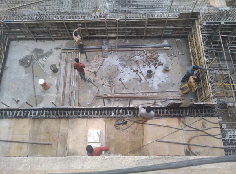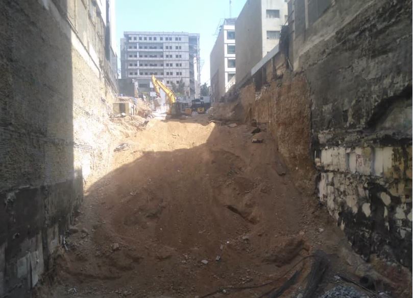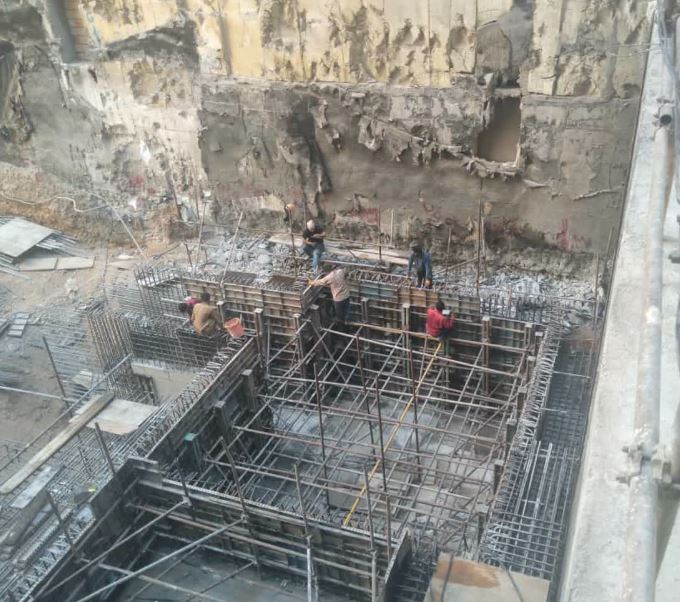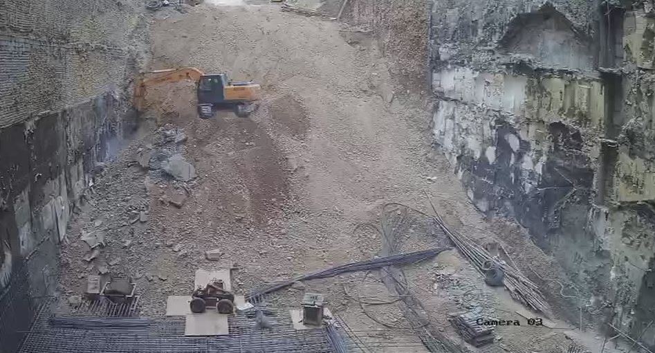 ادامه تخریب پیشامدگی بتن دیواره ضلع شرقی واقع در جنوب شرقی فونداسیون با هیلتی